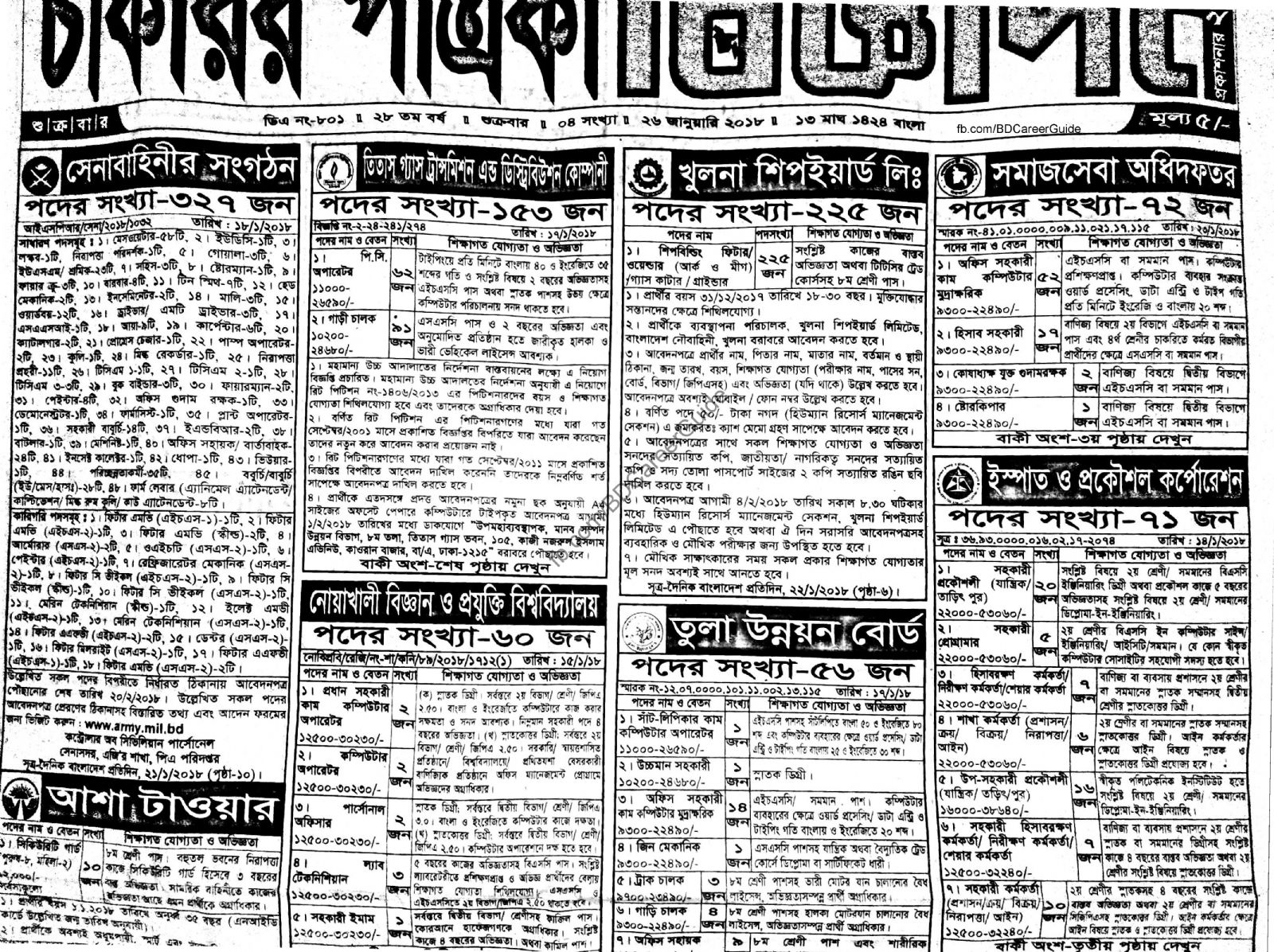 ২৬ জানুয়ারী ২০১৮ ইং চাকরীর পত্রিকা