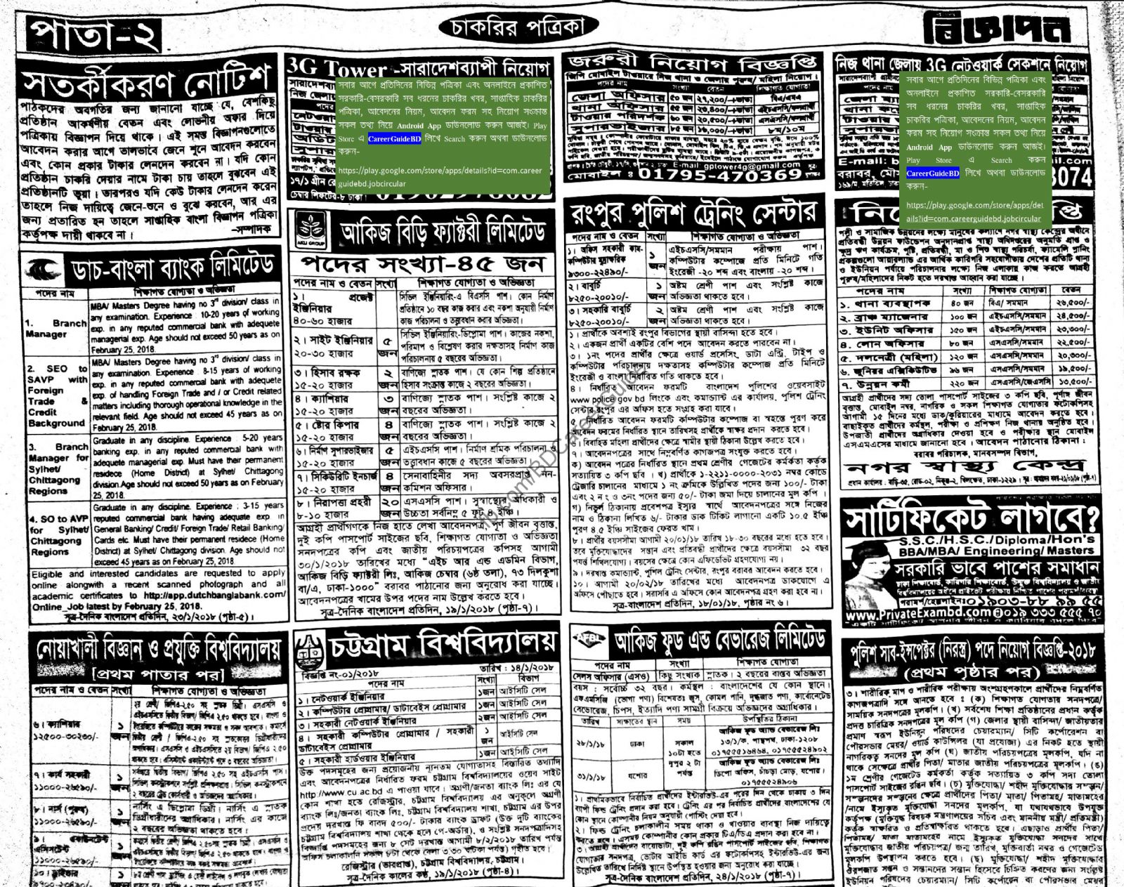 ২ ফেব্রুয়ারী ২০১৮ ইং চাকরীর পত্রিকা